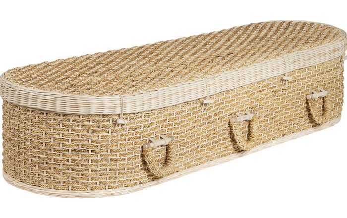 En smuk og bæredygtig kiste, håndflettet i naturmaterialet pandandus – helt uden metal og kemi.