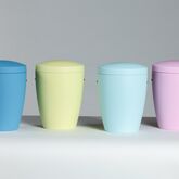 De nye Pludra-urner fås i smukke, matte nuancer som støvet blå, blød gul, pastelgrøn og lavendelrosa. Hver urne er formgivet med en rund, organisk silhuet, der minder om noget naturligt og trygt – som om den lægger sig roligt ind i landskabet og minder os om, at alt har sin tid.